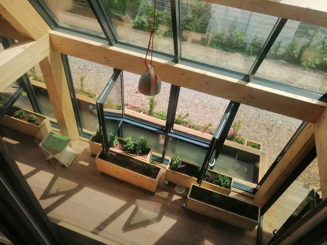 Míg az alsó szint kombinálja az aktív és passzív gépészeti megoldásokat, addig a felső szinten a kísérlet igazolására sem hűtés, sem fűtés, sem szellőztetés nem épült aktív gépészettel. A természet megújuló erőforrásait és a mérnöki koncepcióalkotás innovációját vette segítségül a csapat az emeleti komfort optimalizálásában.