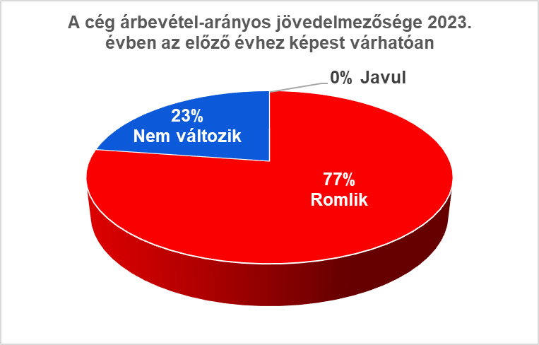 2023. évben az árbevétel-arányos jövedelmezőséget tekintve a felmérésben részt vevő cégek több mint háromnegyede romlásra számít, csak 23%-uk vár változatlan jövedelmezőséget.