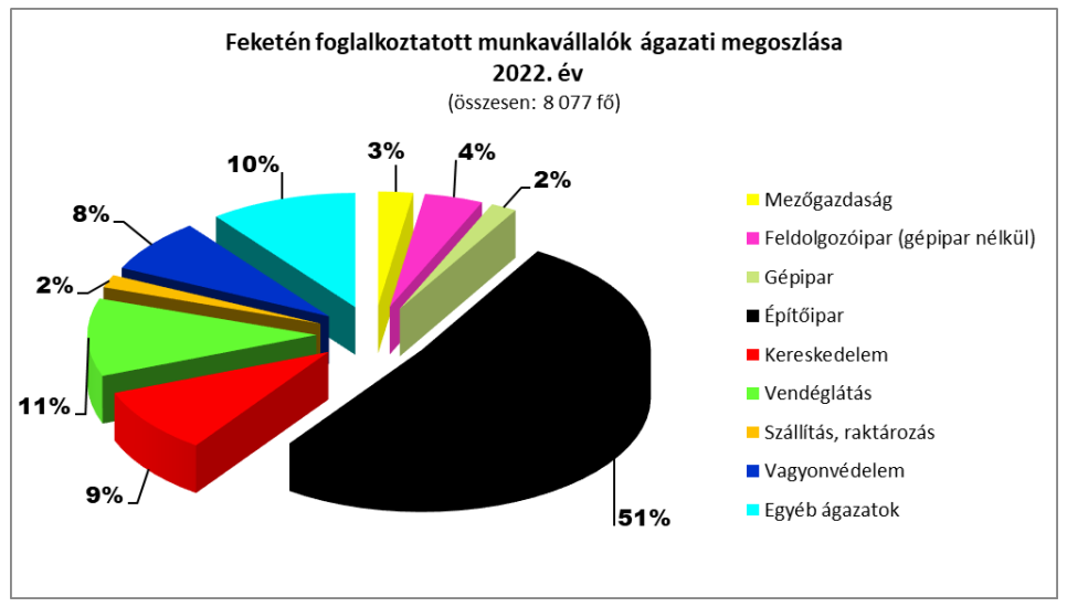 2022. évben a foglalkoztatás-felügyeleti hatóság 13 889 munkáltatót ellenőrzött. Az ellenőrzések 36%-át az építőipari ágazatban tartották (5 010...